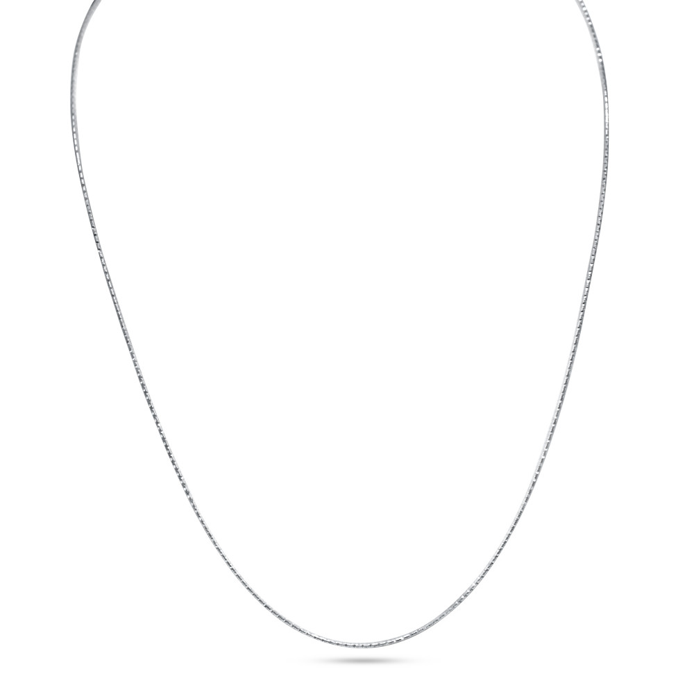 To enhance its allure, the chain is exquisitely diamond-cut, creating a scintillating play of light as it catches and reflects every glimmer. The diamond-cutting technique elevates its visual appeal, giving it a mesmerizing brilliance that effortlessly complements any outfit, from casual to formal. With a weight of approximately 3/4 grams, the QAWAYA Diamond Cut Extra Thin Snake Chain strikes a perfect balance between being lightweight and substantial enough to hold its form. This feature ensures comfort during extended wear, allowing you to flaunt its beauty without any compromise.