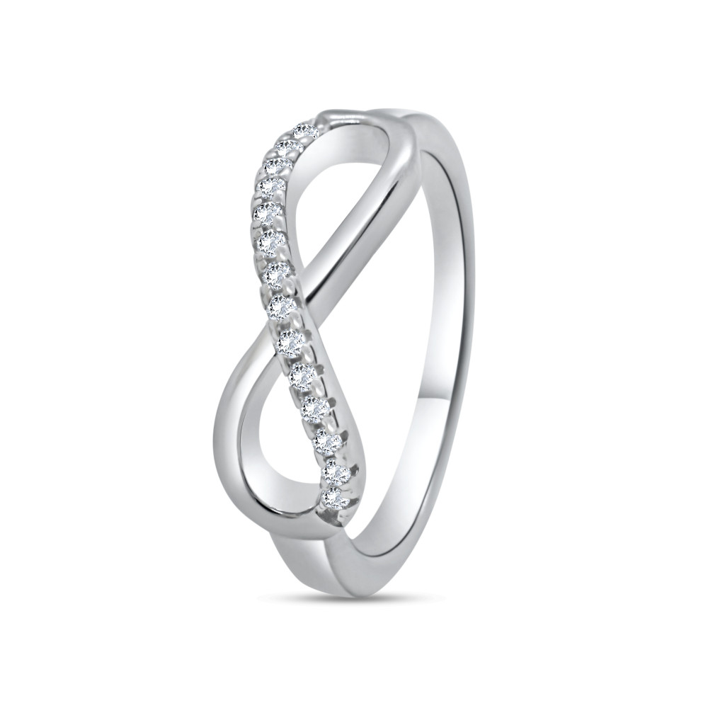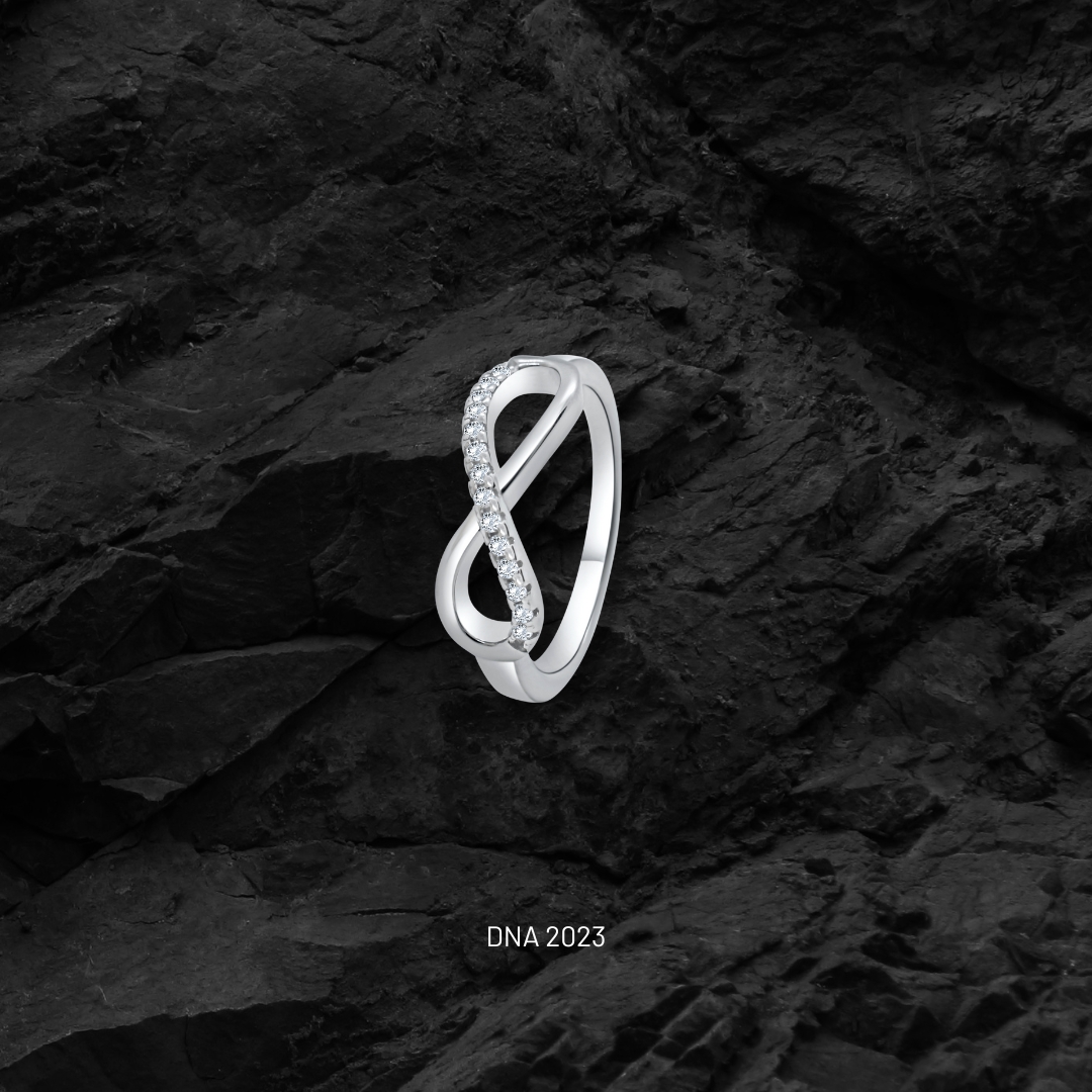 Embrace the everlasting beauty of the Infinity Ring, a symbol of your unbreakable connection. Expertly crafted from high-quality sterling silver, the delicate band features the iconic infinity symbol at its centre, embellished with shimmering cubic zirconia gemstones. Its subtle yet eye-catching design makes it a perfect accessory for both daily wear and special occasions. As you slip on this timeless piece, let it serve as a constant reminder of the infinite love and cherished memories you hold close to your heart.