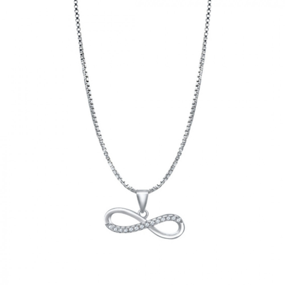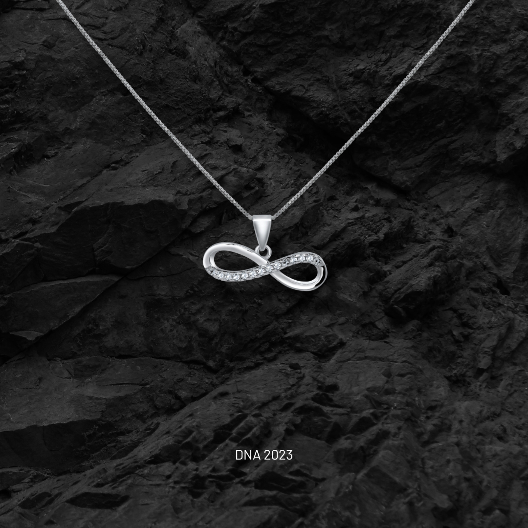Elevate your neckline with the Infinity Necklace, a symbol of infinite love and unity. This stunning pendant gracefully hangs from an adjustable sterling silver chain, allowing you to customize the length to suit your preference. The intricate infinity symbol, adorned with glistening cubic zirconia gemstones, is a testament to the never-ending bond you share with your loved ones. Whether worn alone or layered with other necklaces, this piece adds a touch of grace and charm to any ensemble.