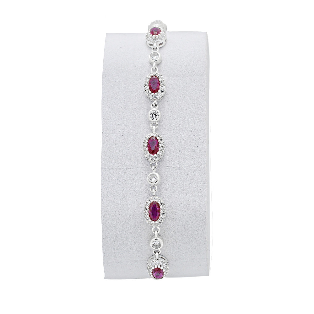 The intricate embellishments, formed by the combination of rubies and clear zircon, enhance the beauty and elegance of this bracelet. The meticulous craftsmanship and attention to detail ensure that each embellishment is perfectly aligned, creating a seamless and captivating design that exudes sophistication and refinement.