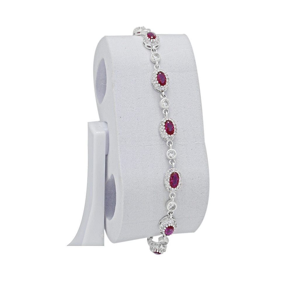 Indulge in the allure of our Royal Thai Ruby and Cubic Zircon Bracelet, a testament to the beauty and grandeur of fine jewelry. Whether it's a formal event, a romantic evening, or simply an expression of your personal style, this bracelet is sure to leave a lasting impression. It is a symbol of elegance, sophistication, and timeless allure.